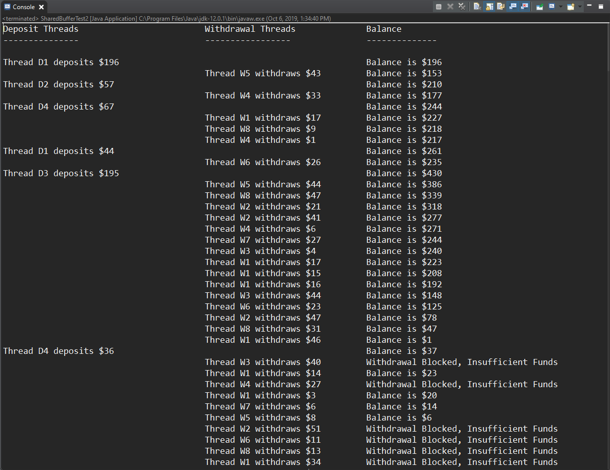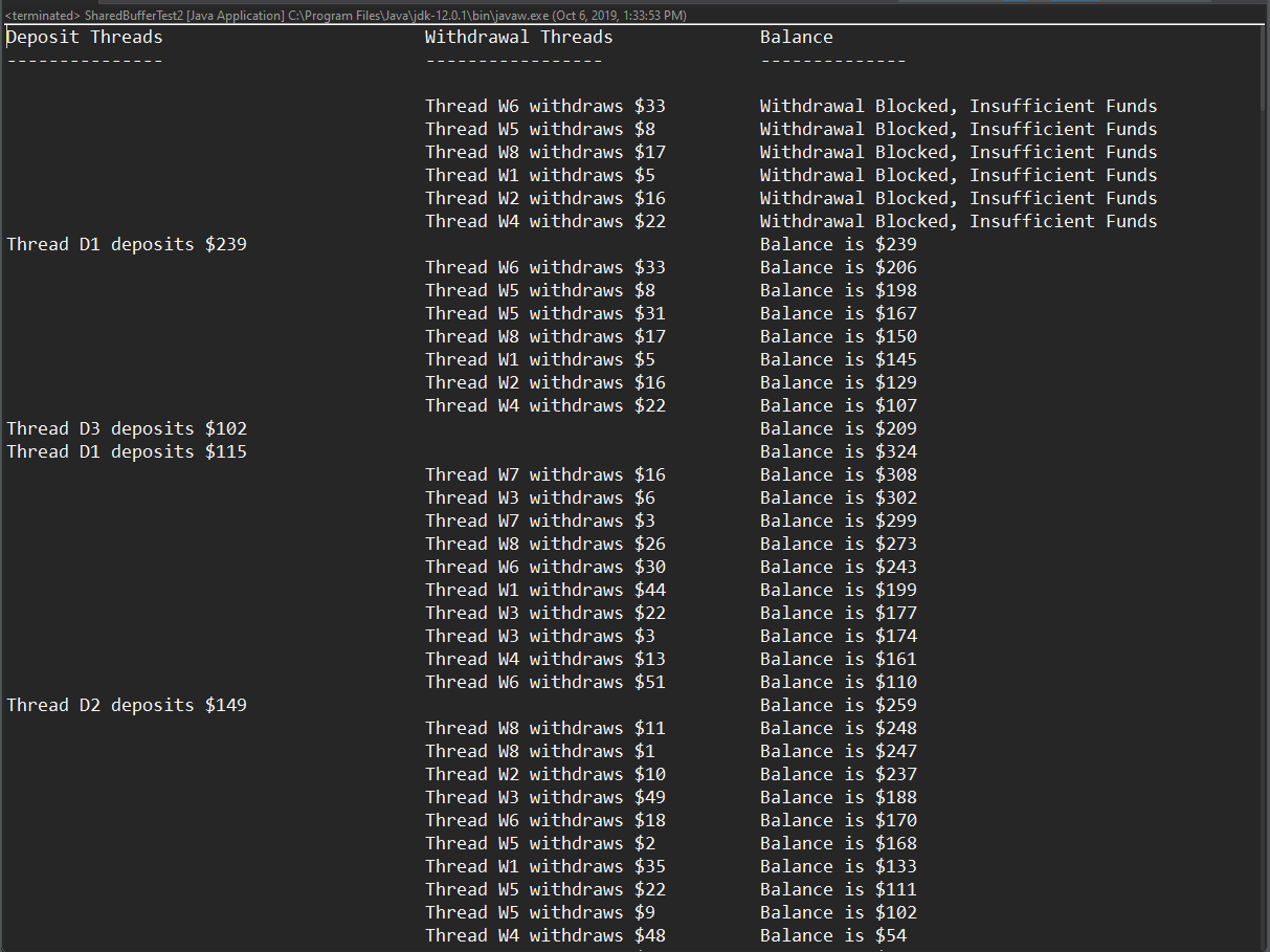 Withdrawal threads block if attempting to withdraw an amount greater than the bank balance