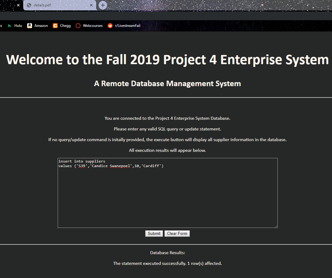First-level utilizes JSP to allow the client to enter SQL commands and submit them to the server application processing